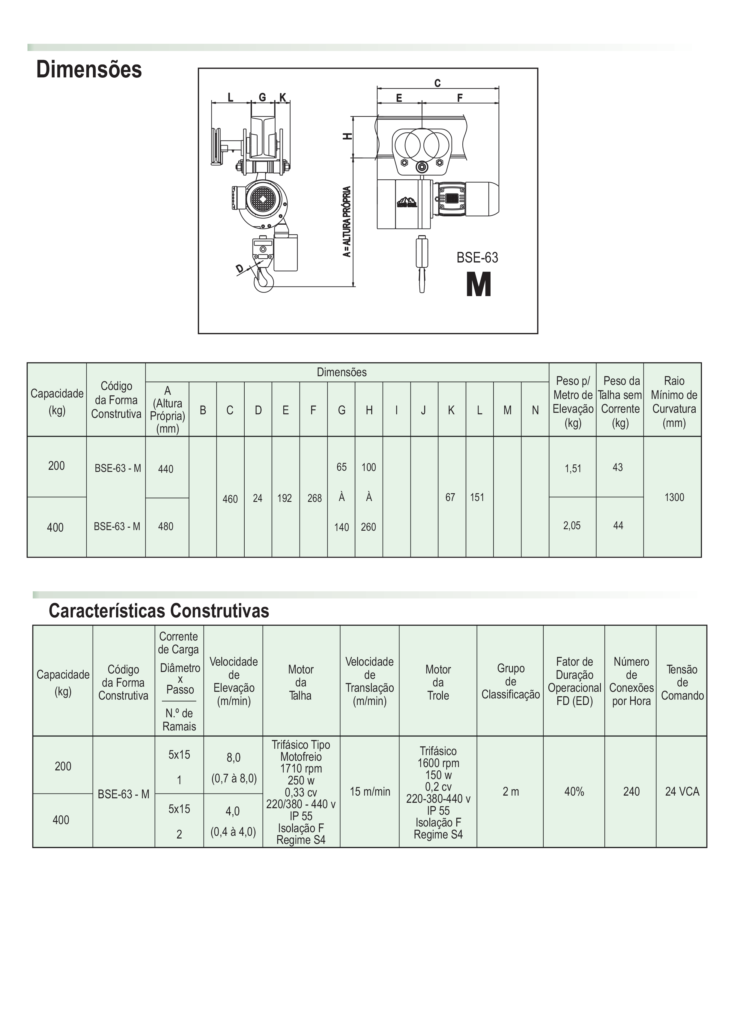 Características Principais das Talhas Elétricas BSE‑80 M
