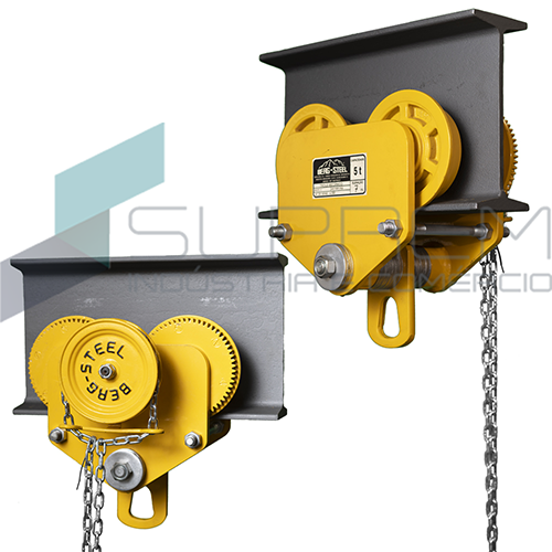 O Trole Mecânico Berg Steel é o equipamento ideal para sustentação e locomoção de talhas do giro livre do giro livre de rodas (rodas universais) sobre a aba de vigas retas ou cônicas com segurança, eficiência e durabilidade.
