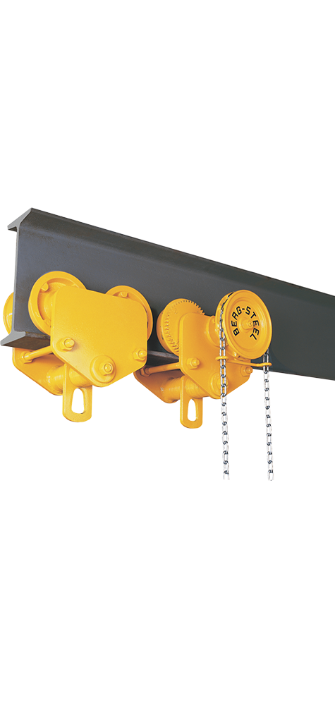 Estrutura toda estampada em chapas de aço, fabricados com rodas universais. Podendo ser utilizados em vigas de perfil reto ou inclinado.